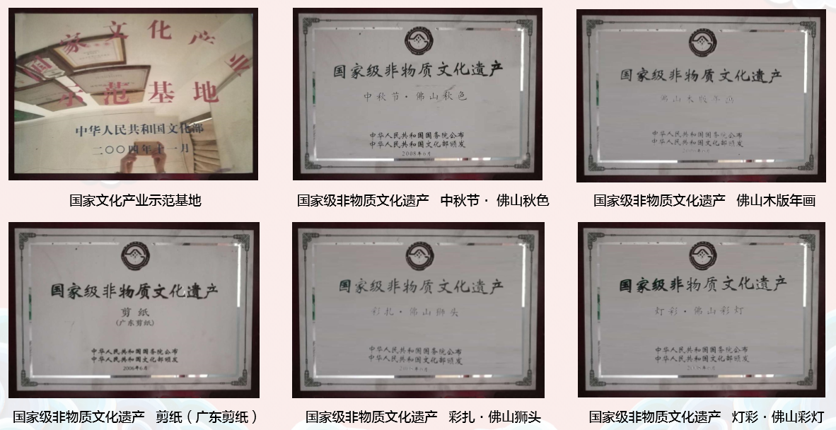 ▼ 佛山民间艺术研究社 创办于1956年,社名由已故文坛巨匠郭沫若先生题写。艺术社是佛山市唯一一家由国家经营的集民间艺术研究、创作、生产经营、旅游接待、展览宣传于一体的专业文化艺术机构。艺术社致力于挖掘、整理、研究发展佛山民间艺术,主要经营项目有佛山秋色、佛山灯色、佛山剪纸等(佛山秋色、佛山剪纸、佛山彩灯均已列入国家非物质文化遗产名录),在2004年11月,被文化部首批命名为国家文化产业示范基地。