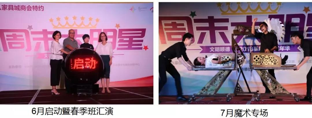 今年6月设立的“周末大明星,群众才艺秀”项目,至今已经开展了春季班学员汇演专场、魔术表演专场、广场舞专场、暑假班学员汇演及培训机构联合演出、粤曲专场、中西音乐专场6次专场演出,活动积累了近80个节目资源,累计3000多人观看演出。